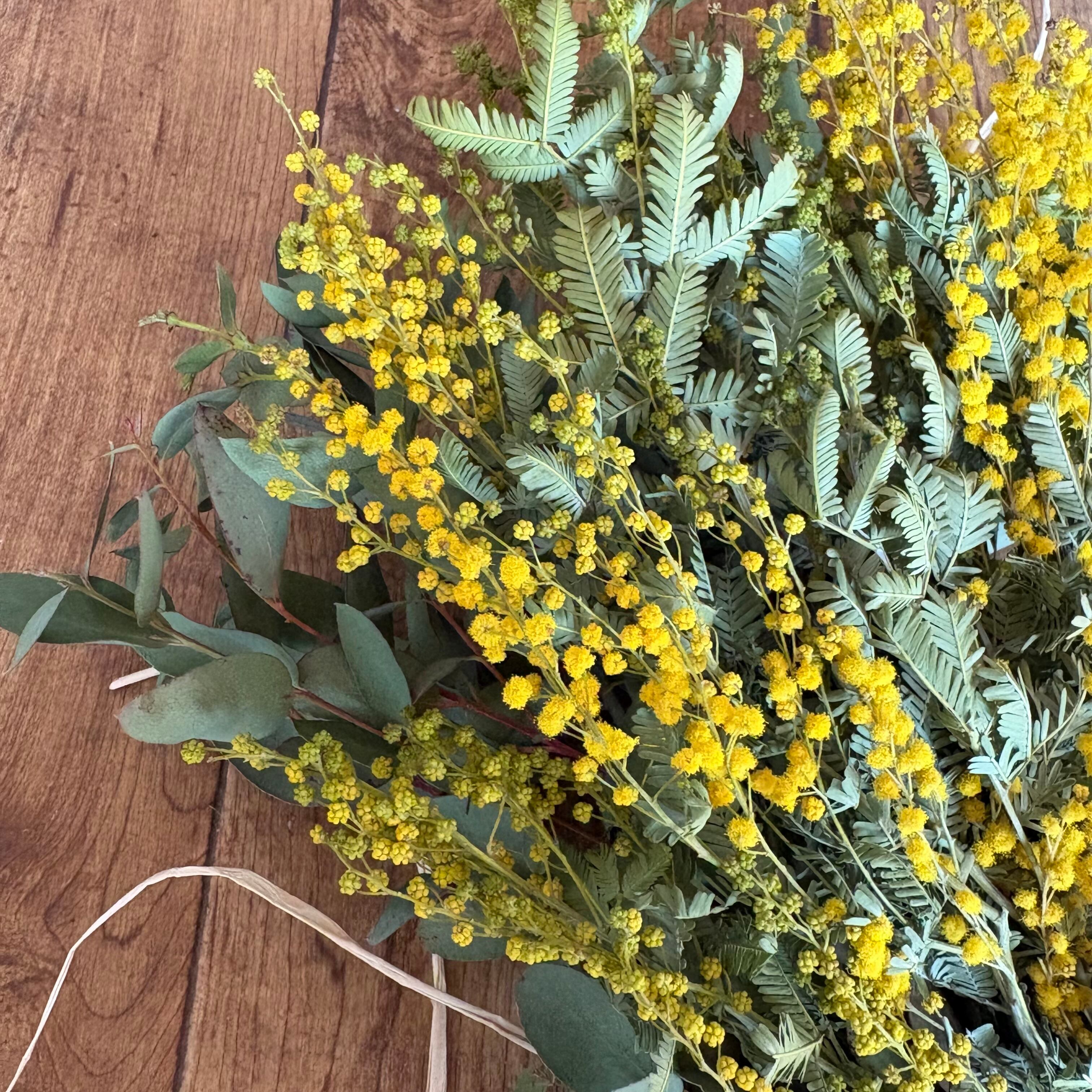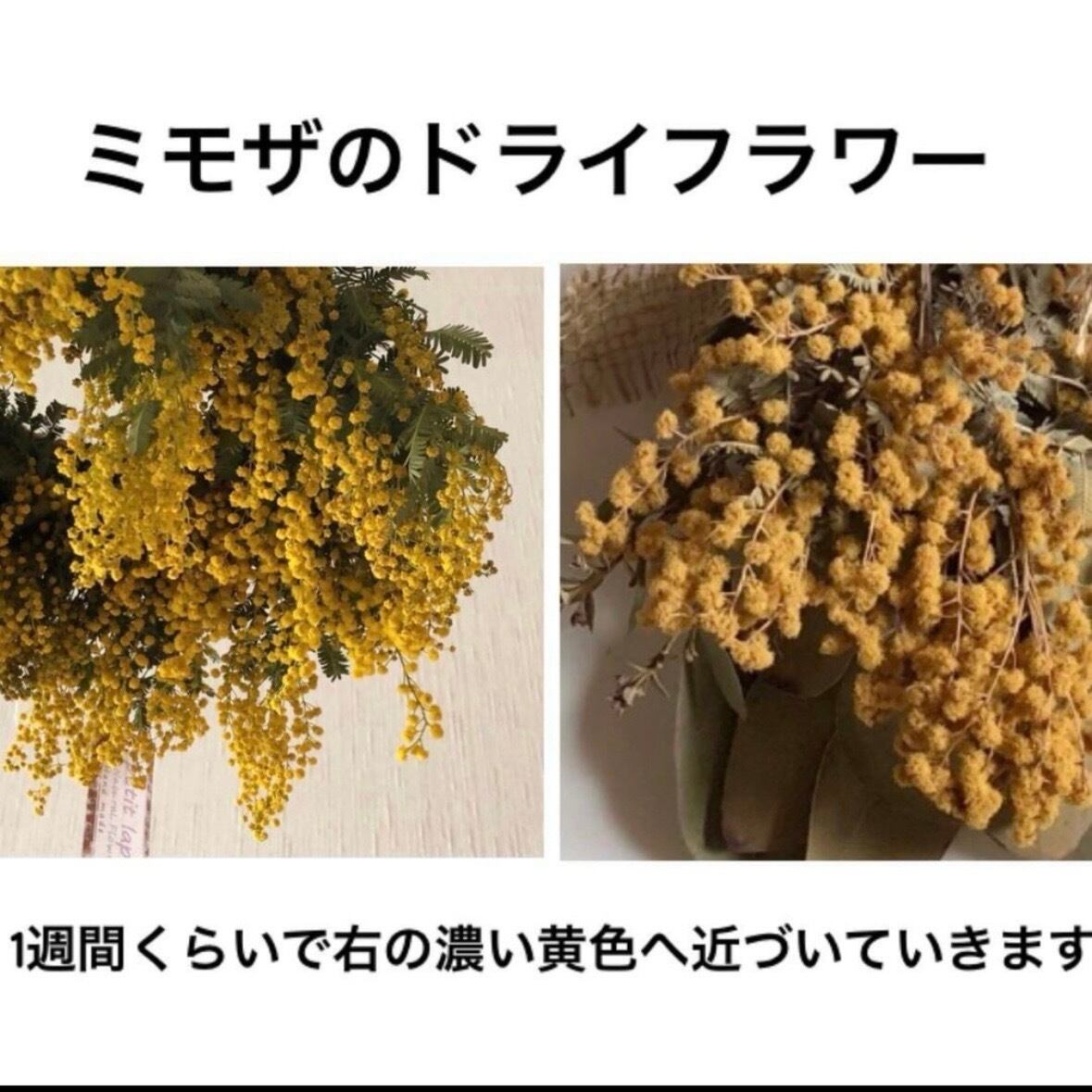 *ミモザはすぐに乾燥が進みます。時間の経過と共に明るい黄色から濃い黄色へと変化します。