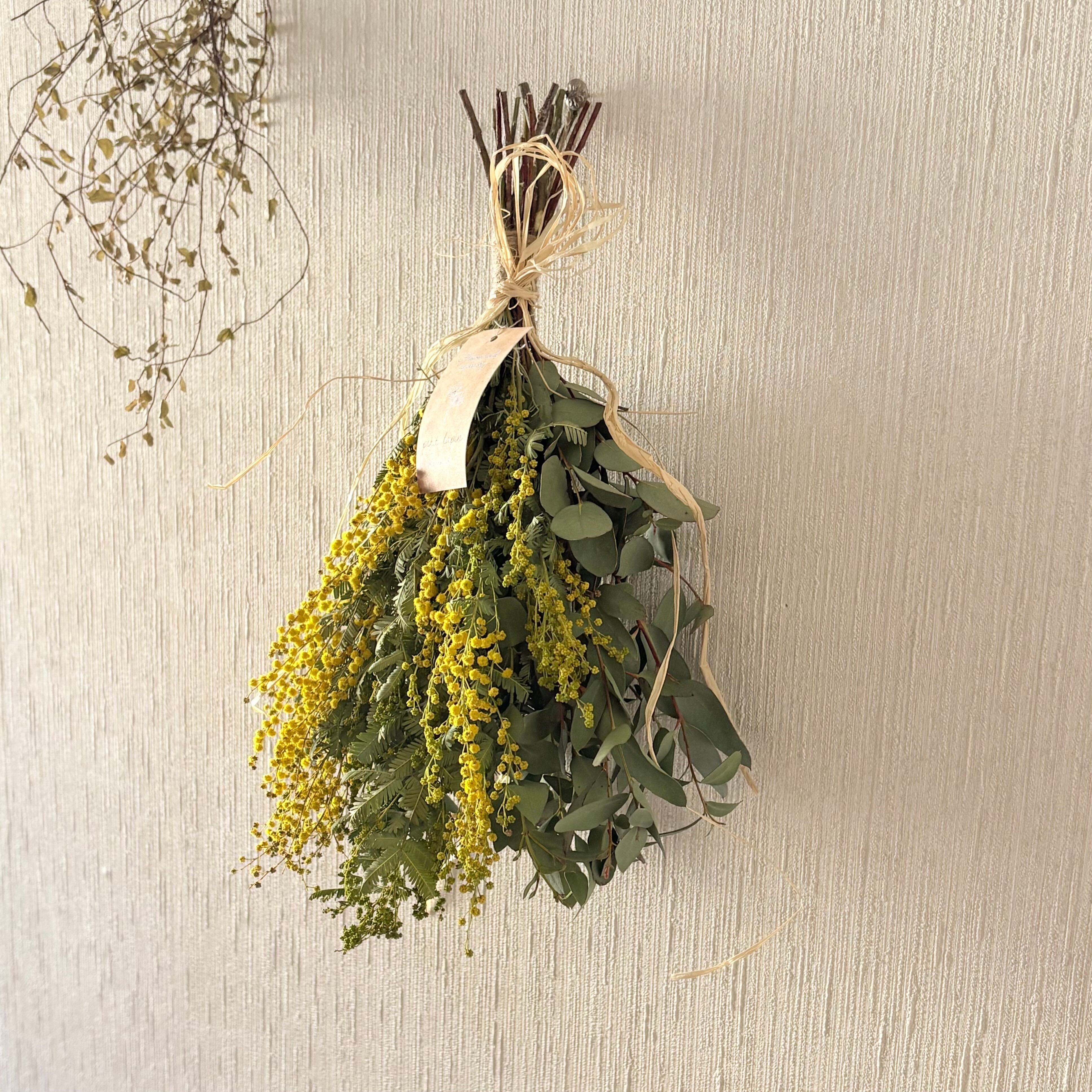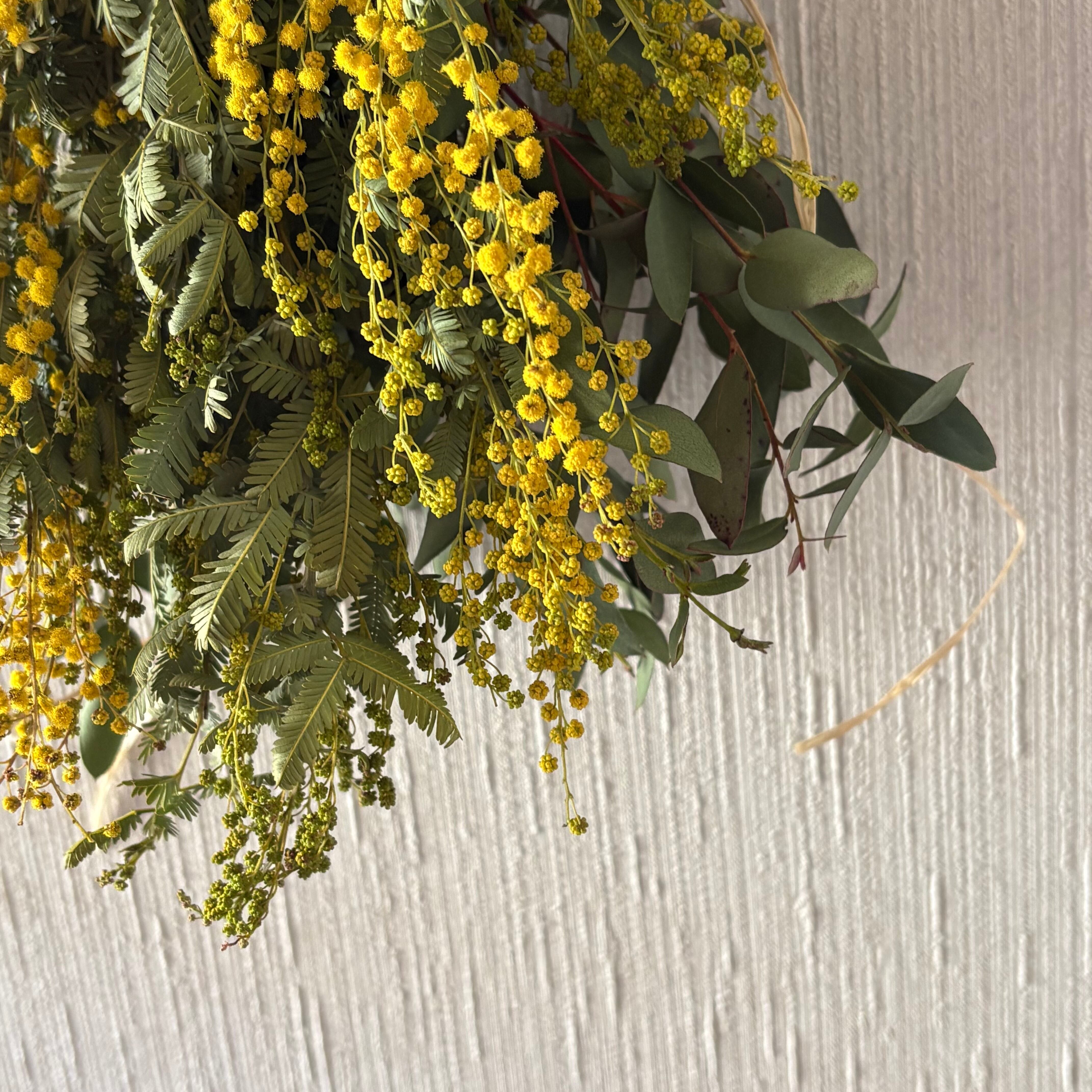 春のミモザ ユーカリ スワッグ M 30cm * ドライフラワー